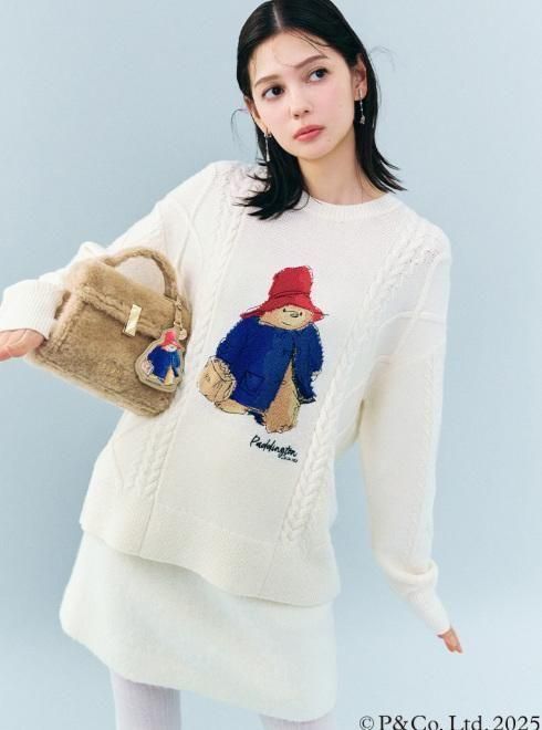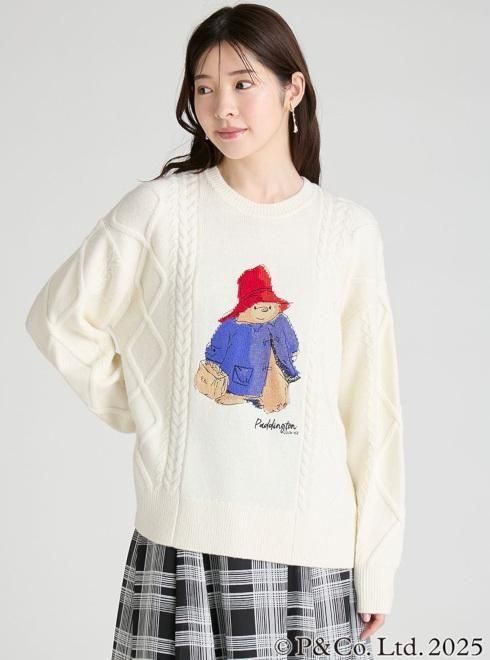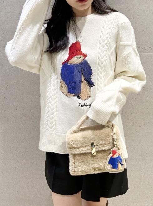 赤い帽子と青いダッフルコート、そしてスーツケースがトレードマークの、世界中に愛されるパディントンの魅力を、繊細なインターシャと刺繍で丁寧に表現したニットプルオーバー。
