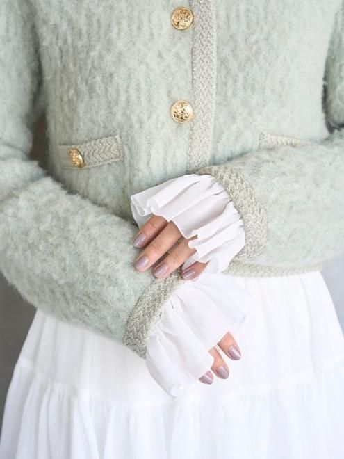 ■素材:本体:アクリル47%、アルパカ34%、ナイロン17%、ポリウレタン2%/パイピング:アクリル67%、羊毛27%、ナイロン5%、ポリウレタン1%/裏地・フリル部分:ポリエステル100%