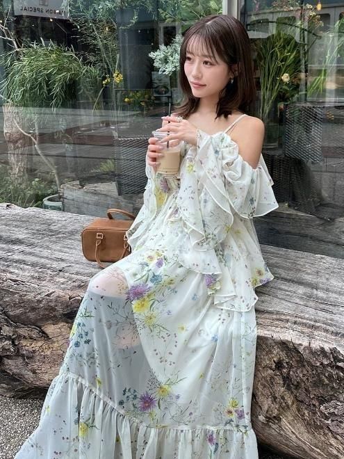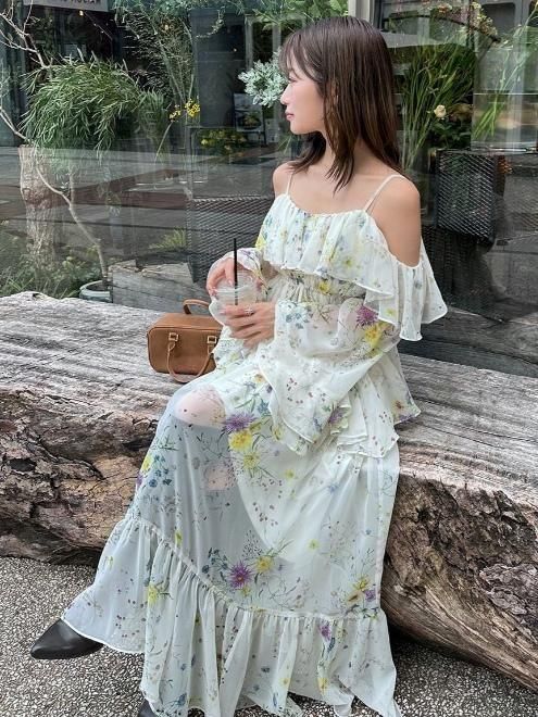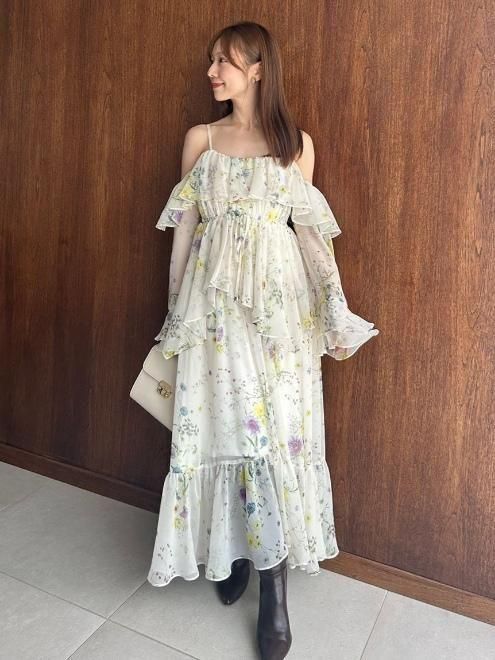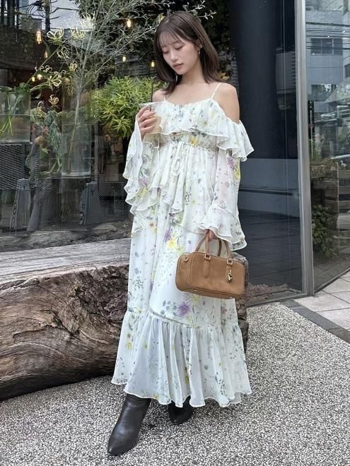 オフショルフリルワンピース 25秋冬.【SWFO255031】マキシワンピース