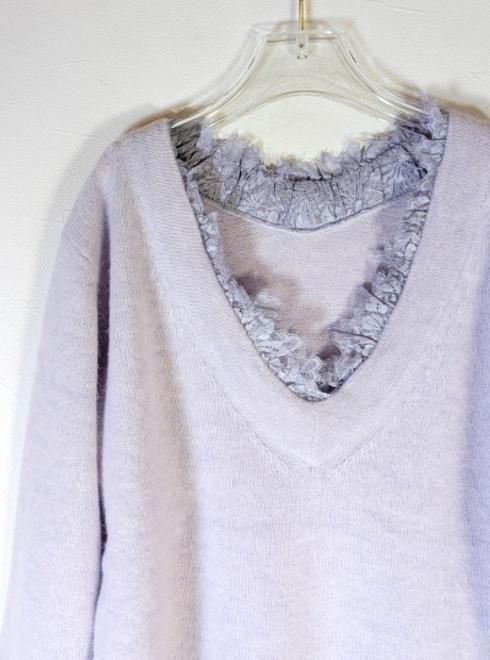 フォックス衿レースプルオーバー 25秋冬.【SWNT255015】ニットトップス
