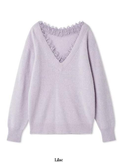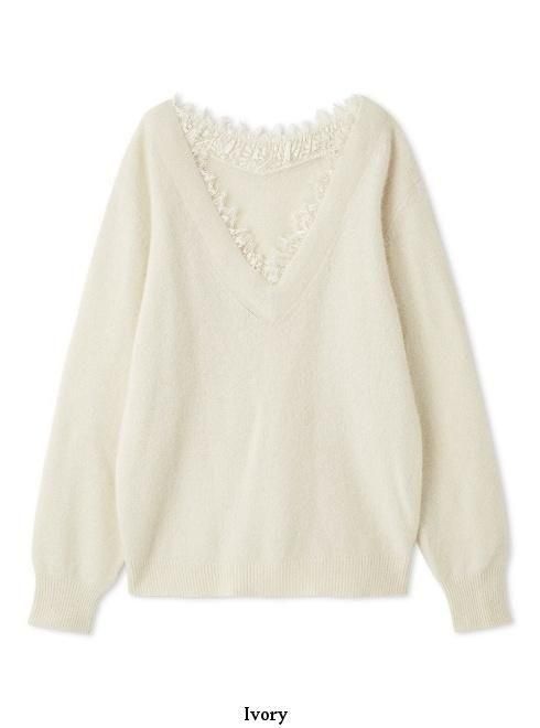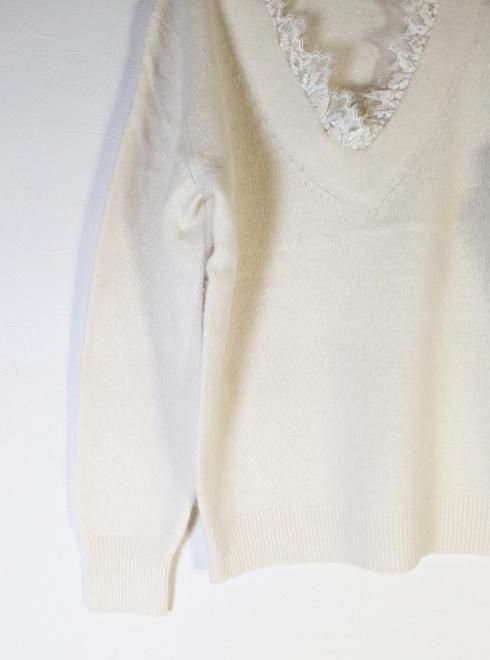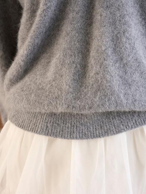 フォックスとウールを贅沢に使用した、ふんわりとした質感で温かみのあるニット生地でお作りした、シンプルで柔らかな表情のギャザーレースニットプルオーバーです。デコルテを美しくみせる広めのVネックの襟ぐりに、エレガントなギャザーレースを程よく施して、大人フェミニンに仕上げました。