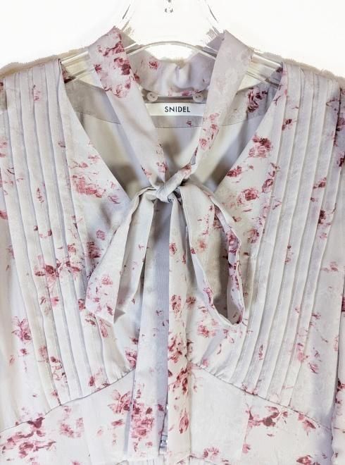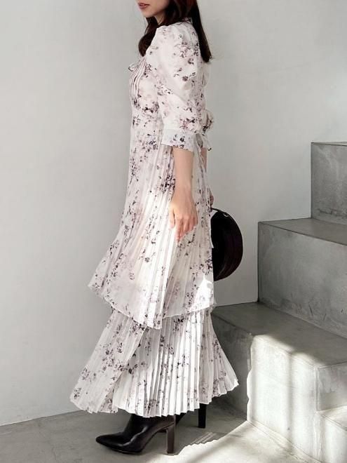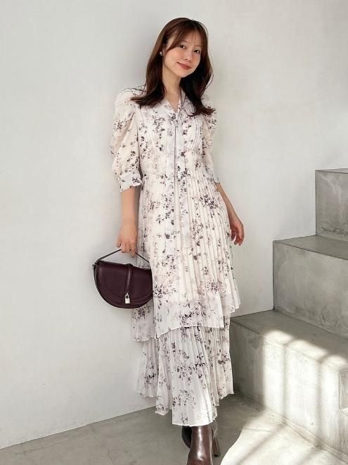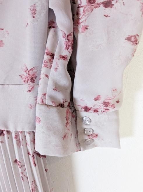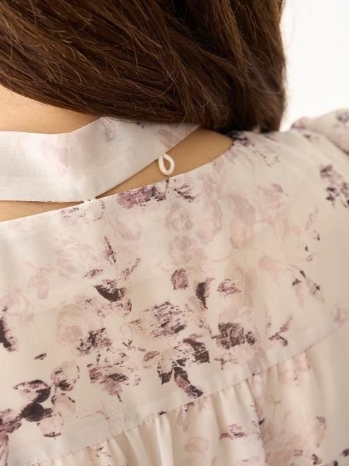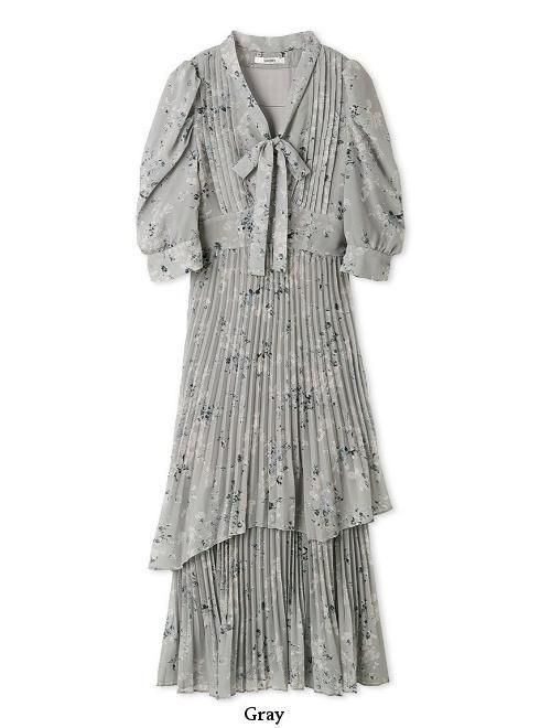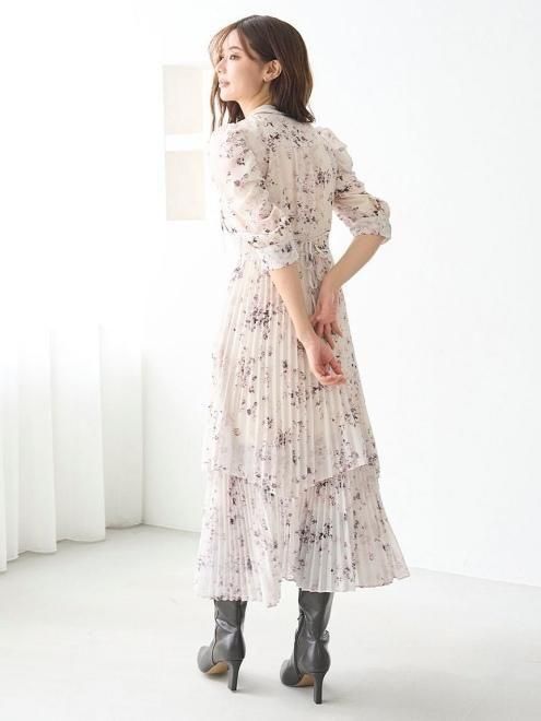 小粒の薔薇モチーフのかすれ柄プリントを取り入れた大人ロマンティックなプリーツシフォンワンピースが登場。共布のボウタイ付きで、後ろのボタンでボウタイの取り外しができるので自由にアレンジいただけます。