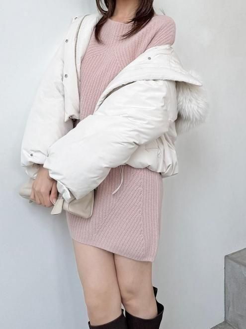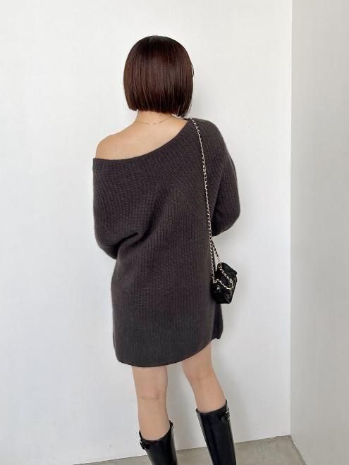 ラクーンお贅沢に使用した、ふんわりとした温かみのある糸を使用し、顔周りをすっきりと、デコルテラインを美しく見せる大きなボートネックで抜け感を出してお作りした大人気のラクーンミニワンピースです。