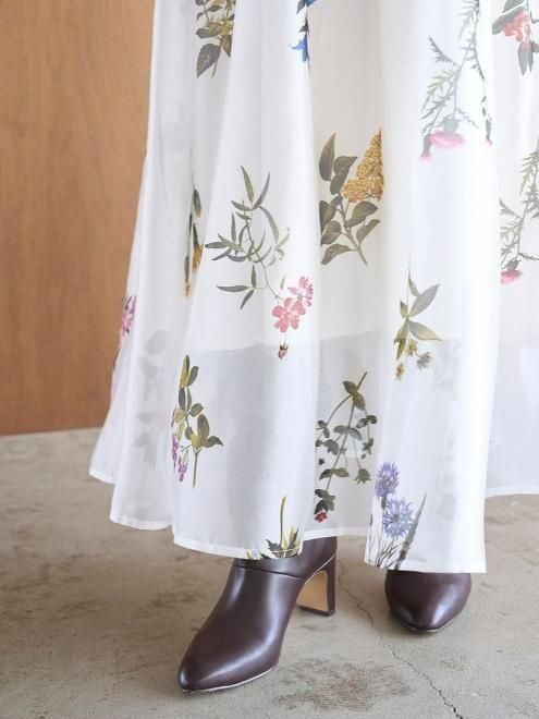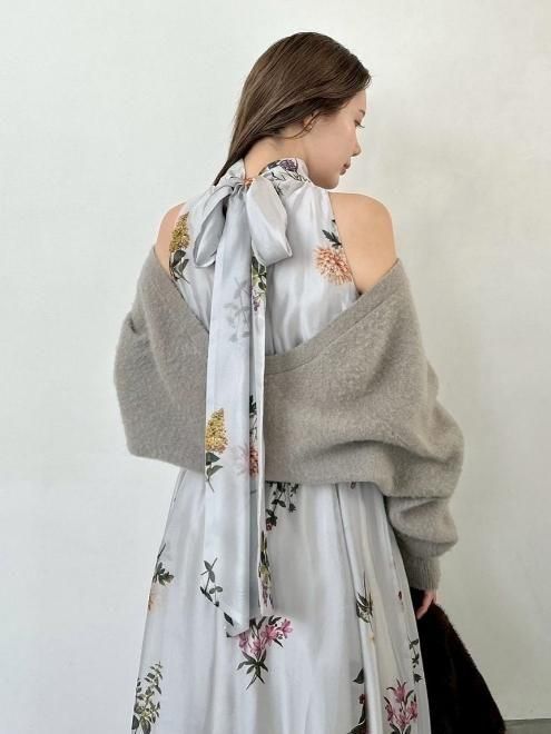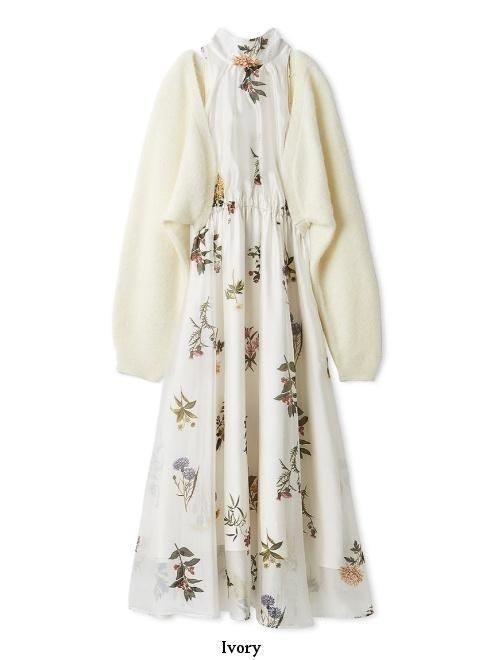 10種類以上の色とりどりのフラワーモチーフを散りばめたSNIEDELオリジナル柄のロングワンピースと、ふんわりニットボレロの今季らしいセットアイテムが到着。ワンピースは柔らかな光沢を放つシルク調素材で軽やかな着心地です。