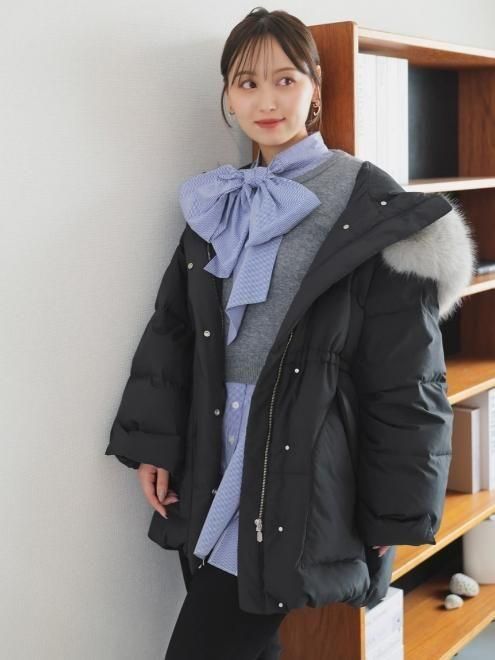 ファー襟付きキルティングショートコート 25秋冬.【CWFC255003】ダウン -