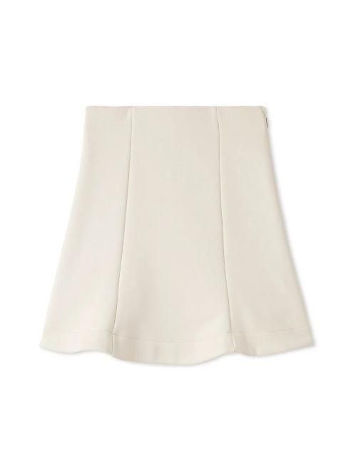 ミニスカートも、ウエスト位置は表地でキレイめに、すっきりとしたフレアシルエットで仕上げています。スカートはサイドのファスナーで着脱いただけます。