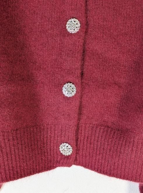 去年も人気のフォックス混の柔らかで肉厚なニット生地でお作りした、華やかで温かみのあるV開きのビジューカーディガンが届きました。今季は、カラーバリエーションが豊富。全色にキラキラとしたラメを織り交ぜて、より華やかにホリデーシーズンを彩ります。