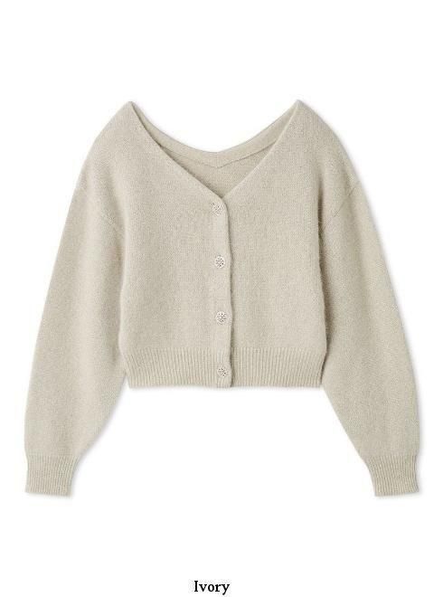 フロントのビジューボタンも去年よりも一層キラキラとしたリュクスなボタンをセレクトしました。前後V開きで抜け感をプラス。裾はリブでフィット感を出しているので、ややリラクシーな身幅でざっくりと着られますが、様々なボトムスやワンピースなどにも合わせやすいバランスで、着こなしの幅が広がります。