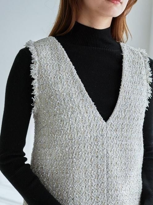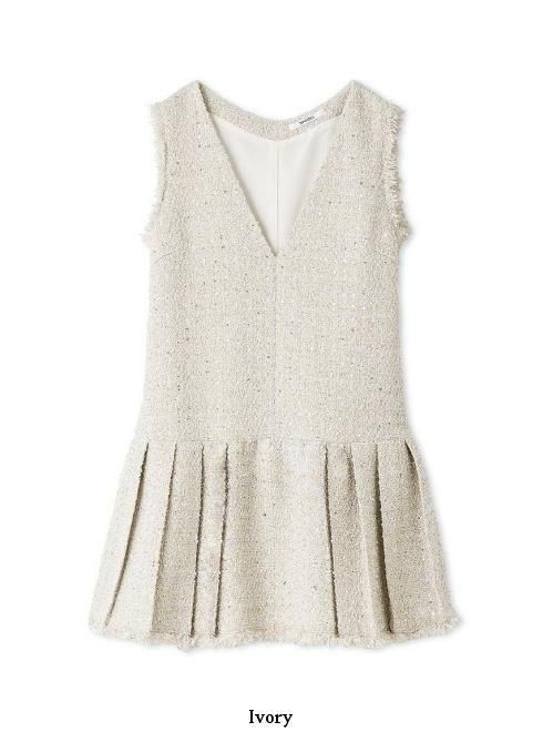 Vネックツイードジャンスカ 25秋冬.予約【SWFO255054】フレアワンピース 入荷予定 : 12月下旬〜