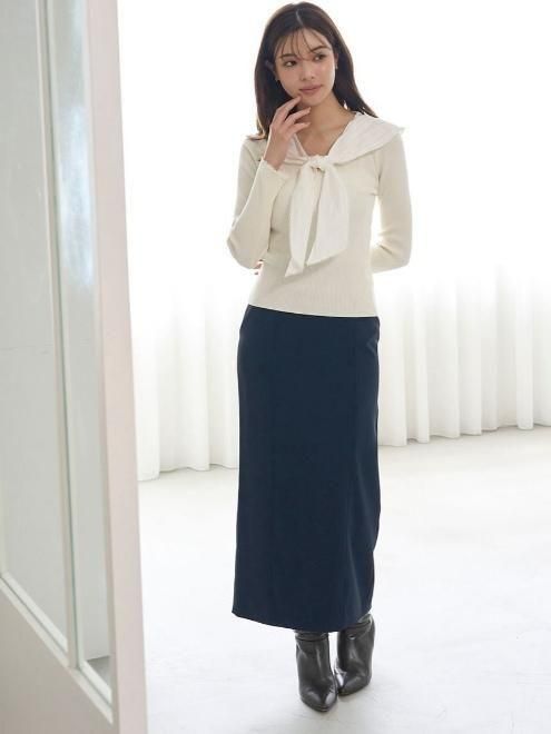 ボウタイトリムニットセットアップ 25秋冬.【RWNO255038】フレアワンピース -