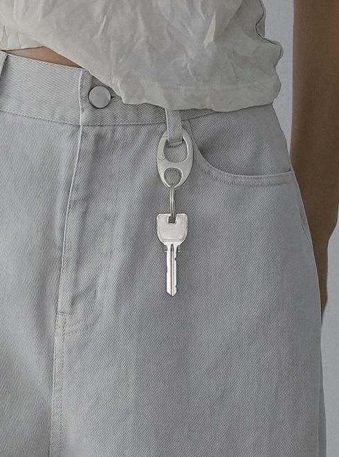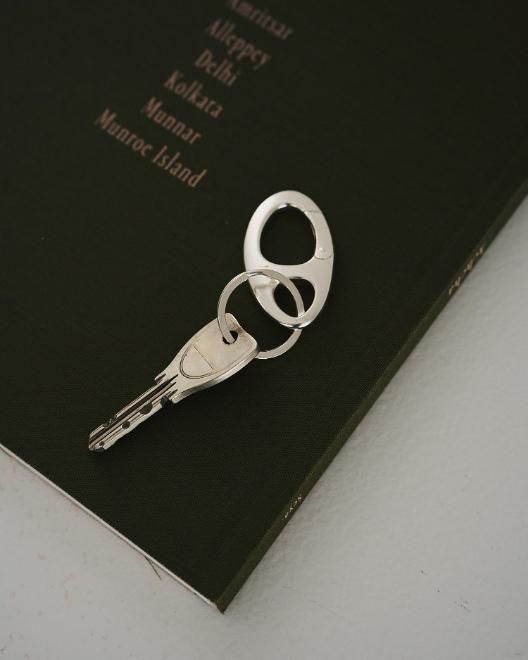 オリジナルのカラビナパーツを使用したキーリング。丸みのあるシンプルなフォルムで、ベルトループやバッグに付けるだけで、コーディネートのさりげないアクセントに。ほんのりと艶めくシルバーで、カジュアルから綺麗目スタイルまで、幅広いスタイリングに馴染みます。