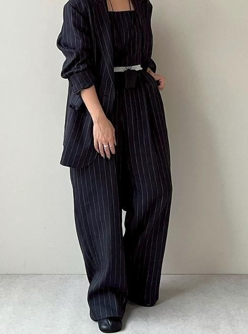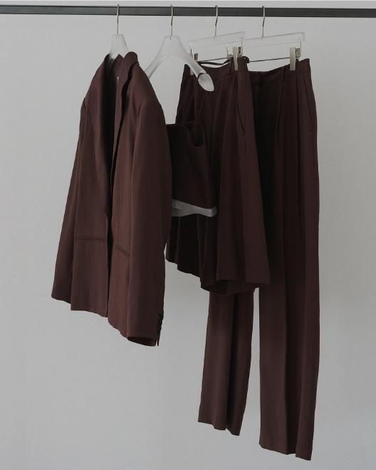合わせやすいカラーリングながら、シンプルなトップスに合わせるだけで、シャレ感が出るのも魅力。同素材のOver Linen Jacketとセットアップで合わせた、マニッシュな着こなしもおすすめです。