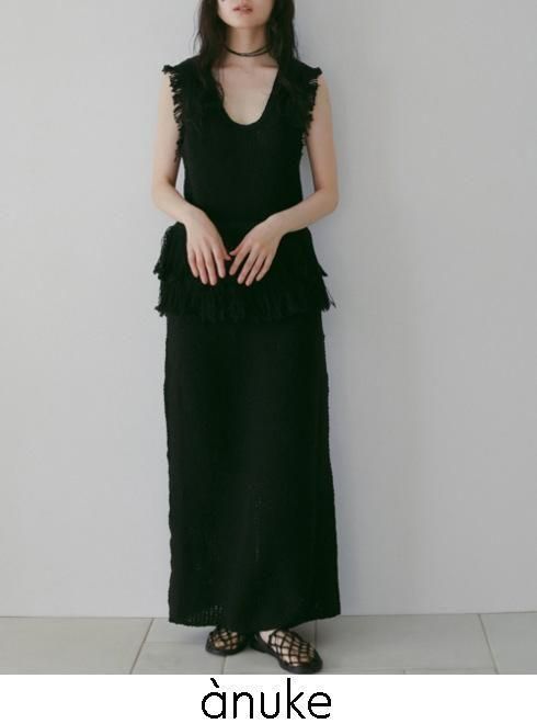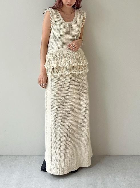 同素材のFringe Knit TanktopやCrochet Knit Cardiganとセットアップで着ていただくのもおすすめです。