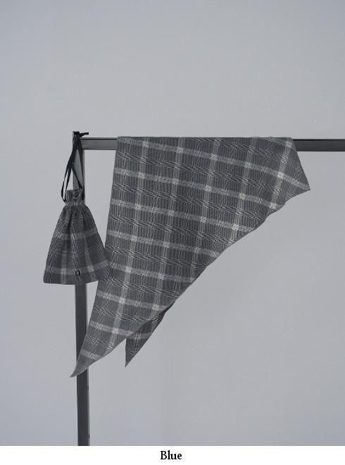 チェック柄が目を惹くをスカーフ。三角形型で、頭に巻くだけでこなれた着こなしに。日本の桐生で織られたオリジナルのチェック生地です。シンプルなスタイリングにも映え、トレンド感あるセンスを添えます。