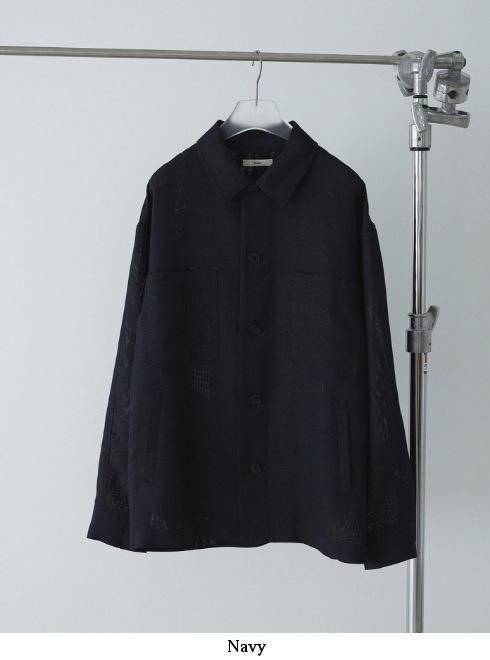 透け感のあるからみ織り素材を使用し、軽やかに仕上げたワークシャツ。程良くハリ感のある素材で、ラフなシルエットにほんのりとモードな印象を添えてくれます。大きめのフロントボタンと胸元と脇にもポケットを付け、アウターっぽく仕上げたデザインが特長的。同素材のTuck Half Pantsとセットアップで着ていただくのもおすすめ。