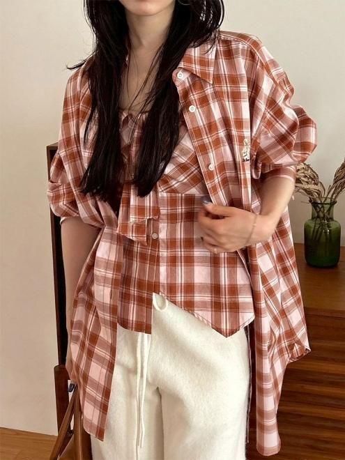 チェックシャツペプラムビスチェ