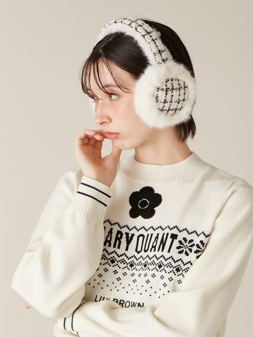 メタルのデイジーマークをポイントにした、冬のスタイリングを彩るイヤーマフラー。肌触りが良く暖かいファーを使用し、季節感あふれる華やかな印象に仕上げました。カチューシャ部分にはスエードやツイードをあしらい、ファーとのコントラストで立体感をプラス。
