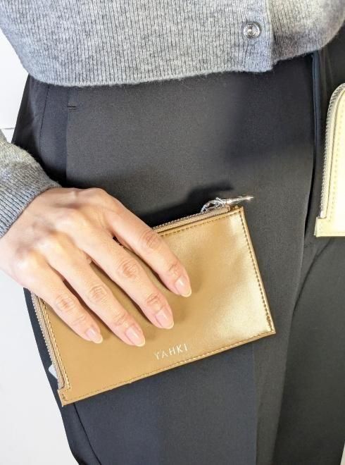 外側には6つのカード入れがあり、ファスナーを開けた内側は小銭入れとしても、カードや鍵など小さな小物を入れたりとマルチに活躍します。 キャッシュレス派におすすめ。