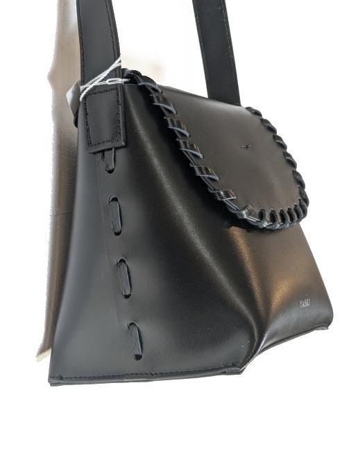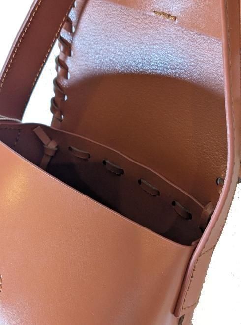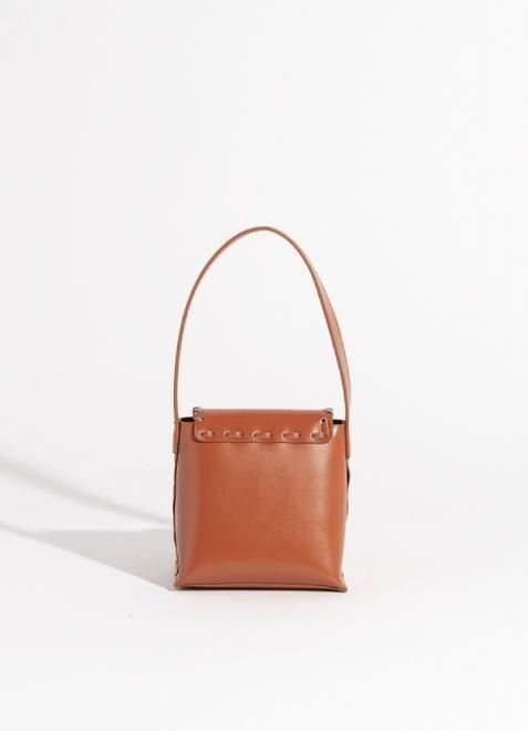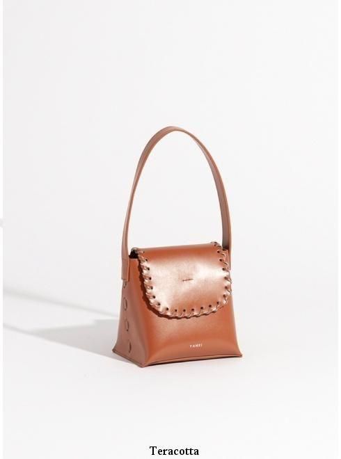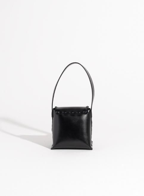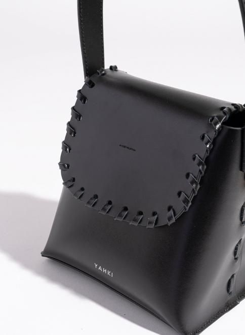 ボックスシルエットに、フラップとサイドをぐるりと囲む太ステッチが印象的。クラフト感とモダンさを両立したデザインです。存在感のある太めのハンドルもポイントになり、手に持っても肩に掛けてもバランスよく決まります。