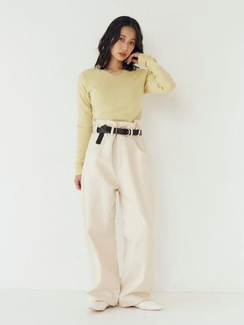 ウエスト部分にポイントが出てキャッチーな1本に。ルーズシルエットでゆるっとしたサイジングがかわいいシルエットに。