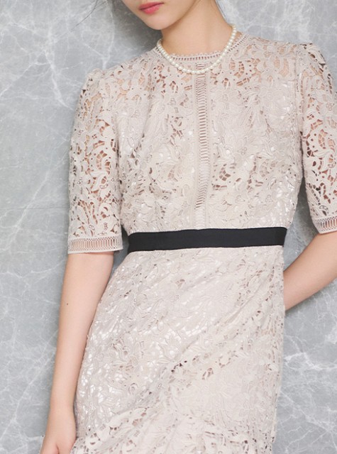 フラワーモチーフ洗練されたパターンが人気のレースワンピ