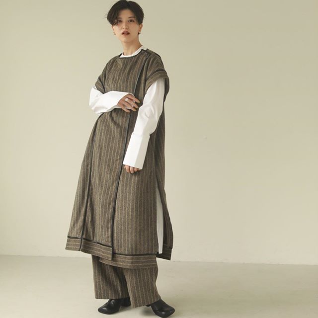 シャツやカットソーにレイヤードしたスタイリングがおすすめ。