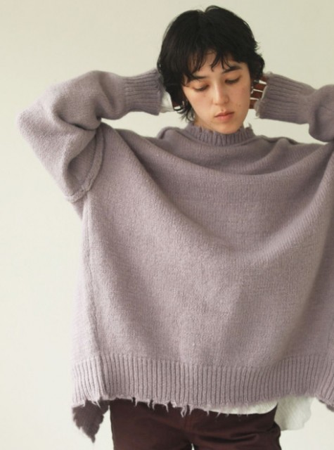リブはランダムに断ち切りの仕様。ゆるめのサイズ感で、