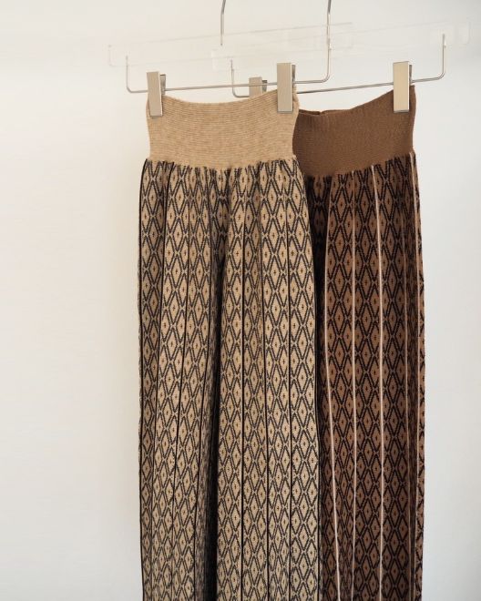 オリジナル柄の編み地をプリーツのようにつないだジャガードニットレギンス。