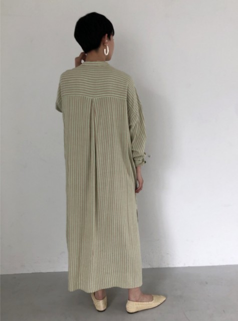 インドでつくったオリジナルストライプ生地のロングシャツドレス