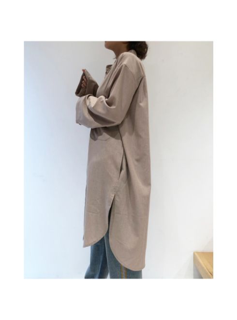 ワンピースとして着れるほど丈感が長めのロングシャツ。
