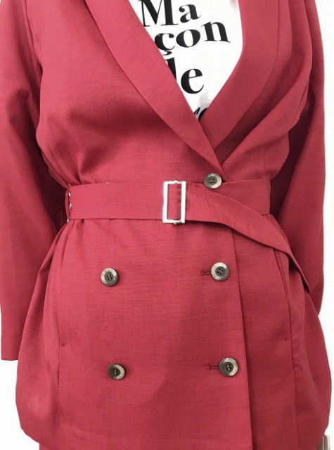 ベルトをキュッと締めれば、ウエスト周りをすっきりと魅せてくれます。