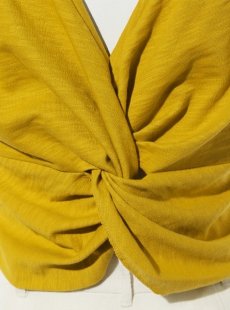 バックスタイルにねじりデザインで、ポイントをプラスしたトップス