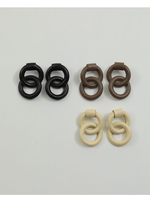 マットな質感のレザーを巻いたダブルリングピアス。