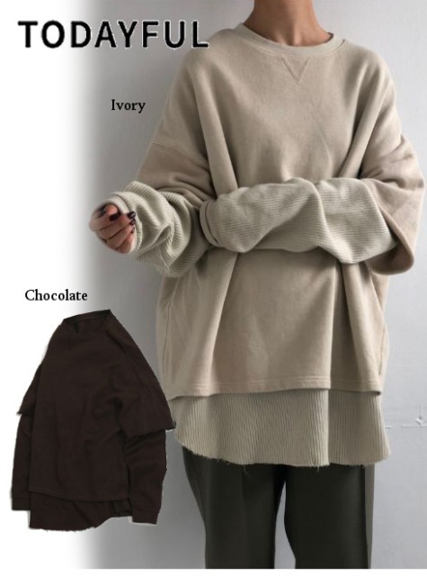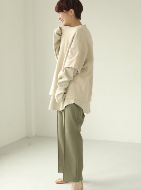 リブのロンTとスウェットをレイヤードしたようなデザインのプルオーバー。