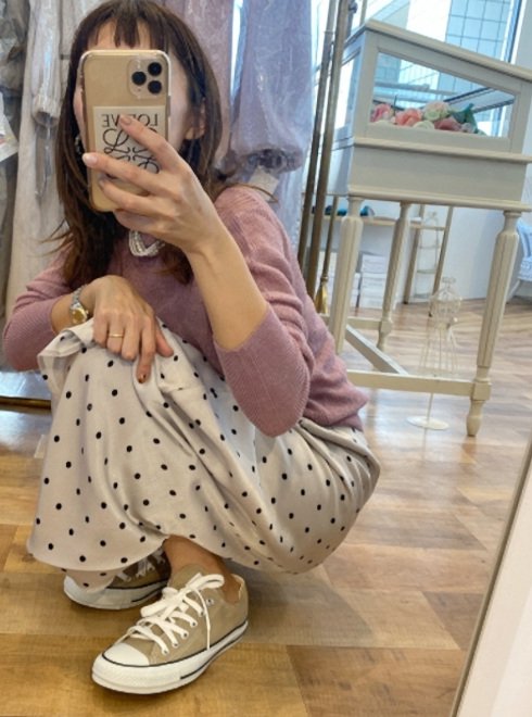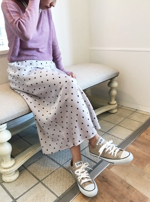 カジュアルなのに後ろのスリットが女性らしいところもポイントです。