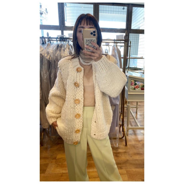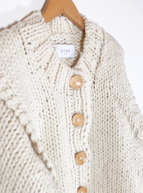 ペルー原産の極太タイプのバルキーヤーンを使用したハンドニットカーディガン。