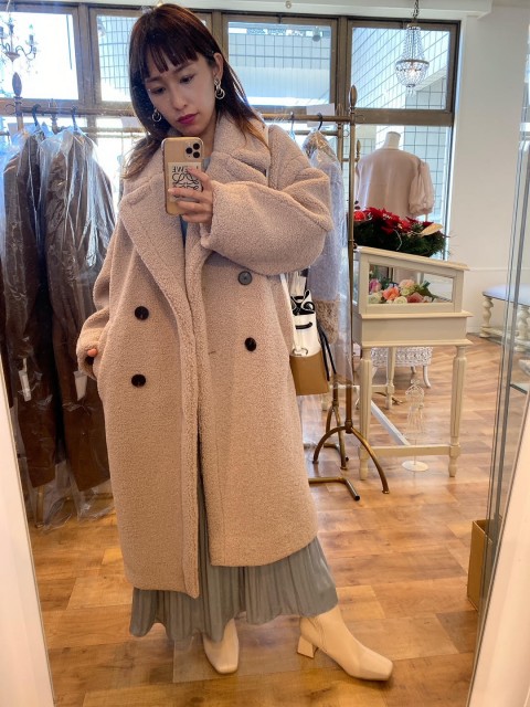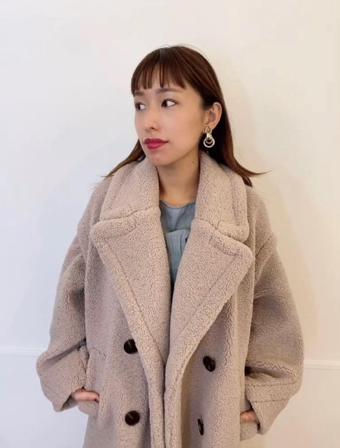 テディベアみたいなモコモコしたボア生地のオーバーサイズコート