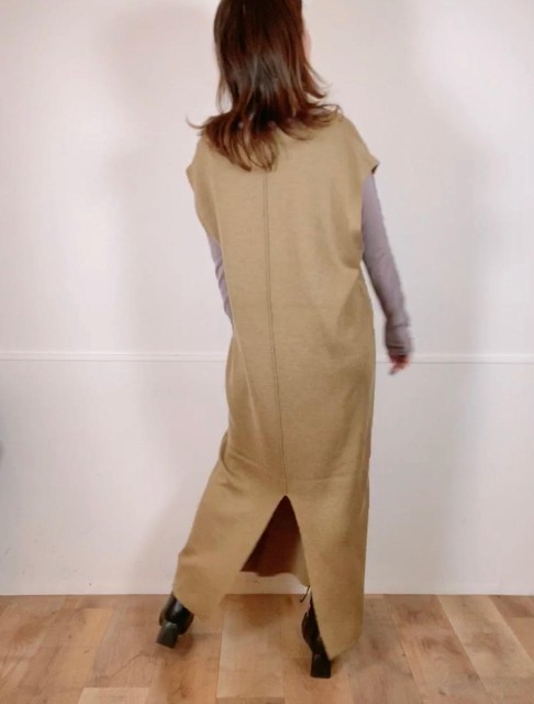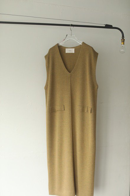 すっきりとしたVネックのニットドレス。軽やかな着心地◎