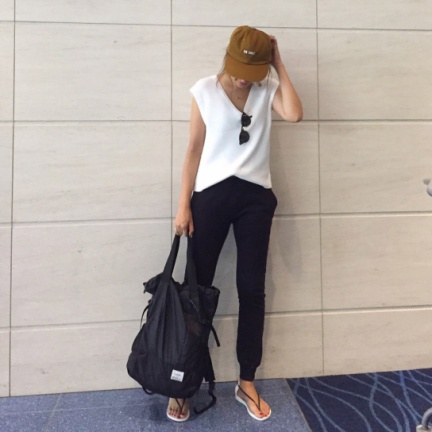 歩きやすさとスタイルアップ効果が狙えるサンダルはワントーンカラーでコーディネートに取り入れやすいのが◎
