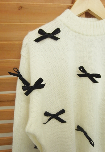リボンがたくさんついたデザインが愛らしいモヘヤニットがお目見え☆
