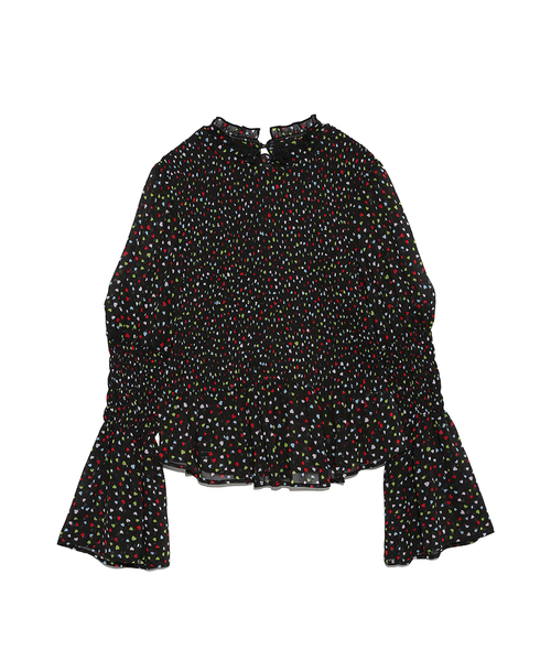 身頃にオールシャーリングを施したハート柄が愛らしいフェミニンなトップス♪