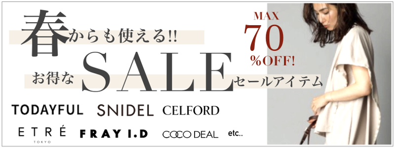 【春からも使える!!お得なセールアイテム】MAX70%OFF!!カテゴリー別でご紹介