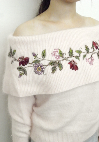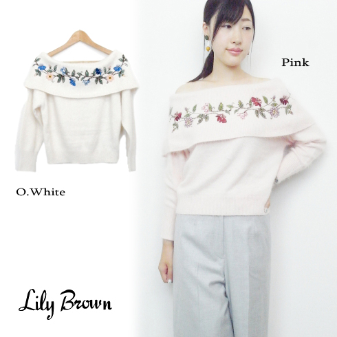 柔らかな女性らしい印象に仕上げてくれる刺繍オフショルニット♡