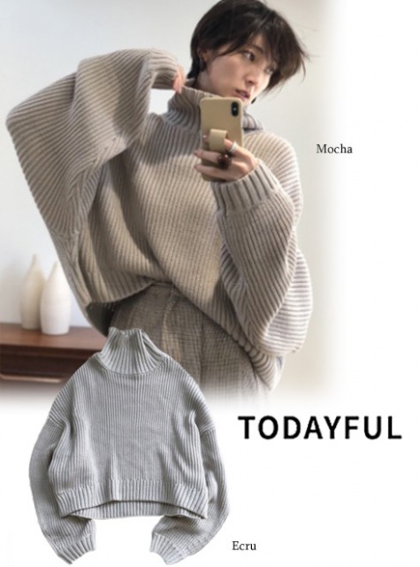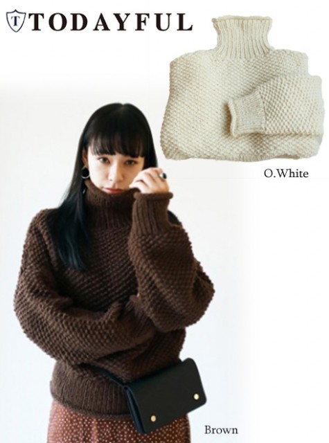 ポコポコした立体的な編み地が可愛いボリューミーなタートルニット♪