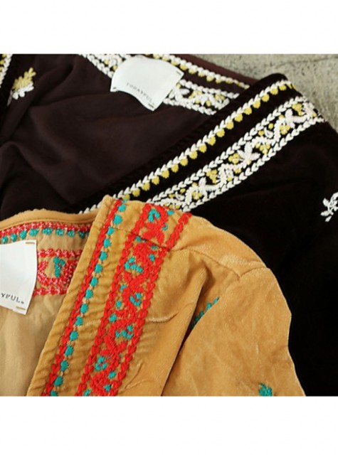 風合いの良いベロアの生地にカラフルな刺繍を乗せてパッと目を引く1枚に☆