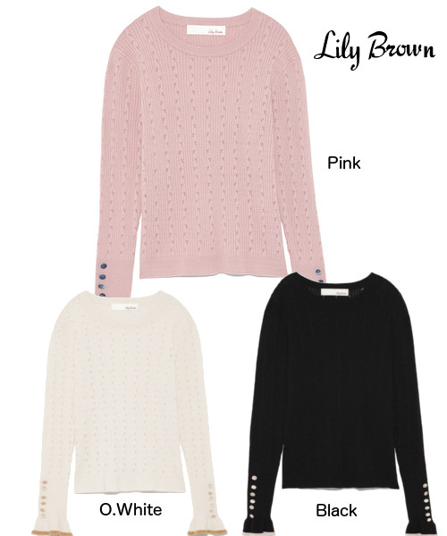 Lily Brown(リリーブラウン)ベロアボタン付ニットプルオーバー 7,992円 ※入荷時期:8月下旬~10月上旬