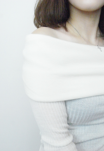 今年トレンドのオフショル、素材が気持ちいいニットトップス。
