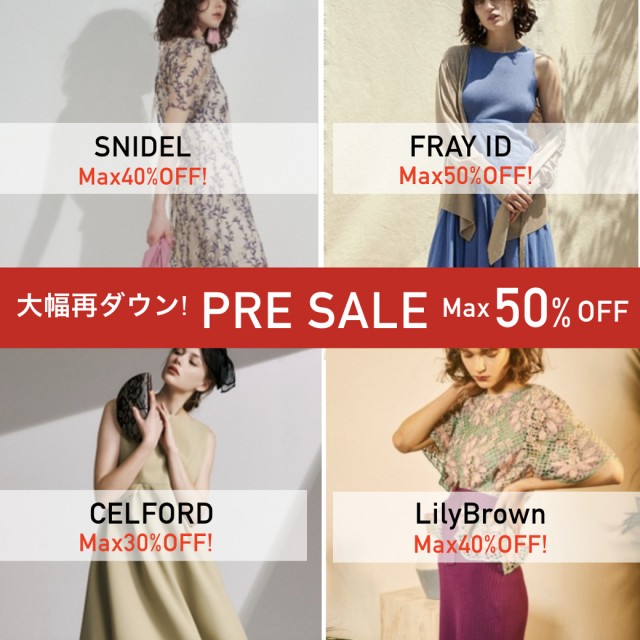 【速報】夏プレセールアイテム大幅ダウン! Max50%OFF♪SNIDEL.CELFORD,LilyBrown,FRAY.ID,ETREなど約600アイテム♪