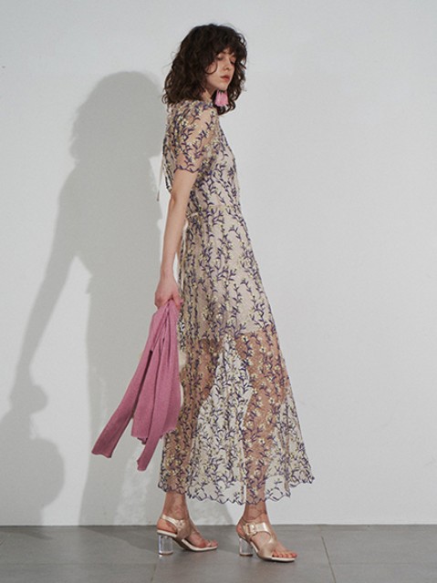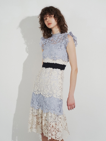 オケージョンシーンに映える、3種の異なるレースを贅沢に使用した総レースドレス