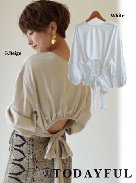 後ろのリボンがキュートなシンプルトップス